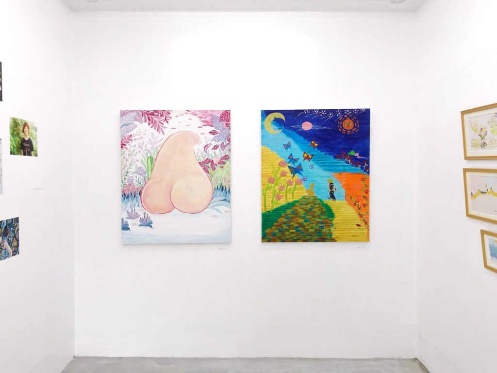 主に女性の写真を撮影したマナと、自身の真実を描くカオリホント。美術の専門教育を受けていなくても、近隣地域で活動を続けてきた彼女たち。家事や子育てに追われ、サボろうにもサボりきれない中で自分自身を忘れずにいることは、本当にすごいことだと尊敬します。そんな中で生み出される作品には、例えノイズが入ろうとも鉤括弧付きの「美術」から漏れてしまった、言葉にならない言葉が詰まっている気がしてなりません。展示を楽しみに過ごした時間やその過程で得た気付きは、本人や家族にとって身近で直接的に働くのだと思います。ドイツのアーティストたちが対コロナ支援を呼びかける時に使った言葉、「内的生存性のための精神的基盤」そのものがここにあるのではないでしょうか。