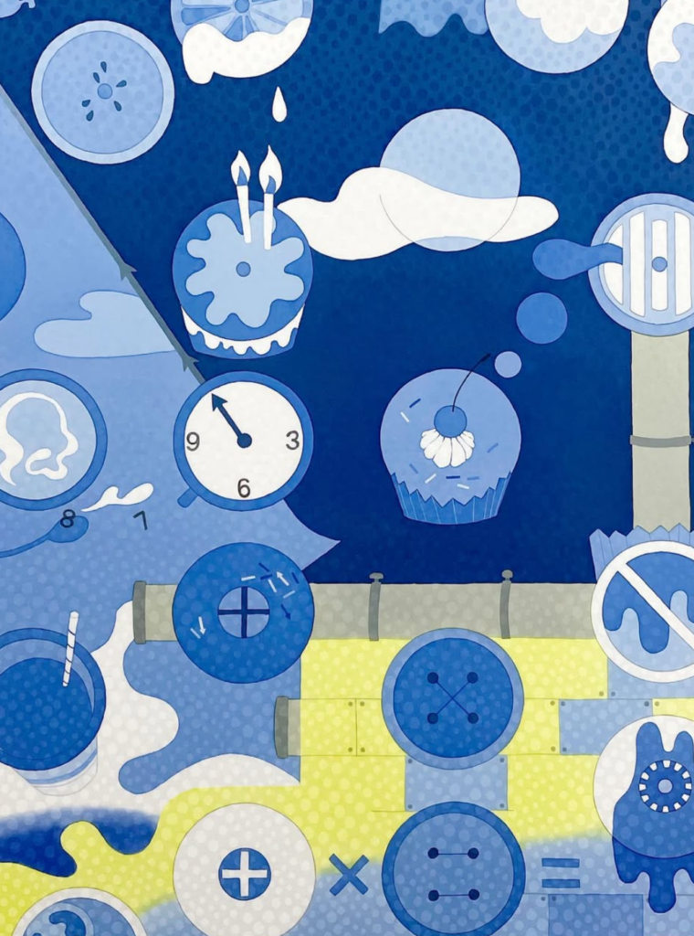 作品はロウケツ染めという技法で作られています。